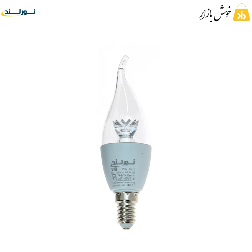 خوش بازار / فروشگاه / لوازم الکتریکی / نور و روشنایی / لامپ / لامپ لوستر / لامپ اشکی و شمعی / لامپ الایدی اشکی 7 وات نورلند مدل شفاف مهتابی